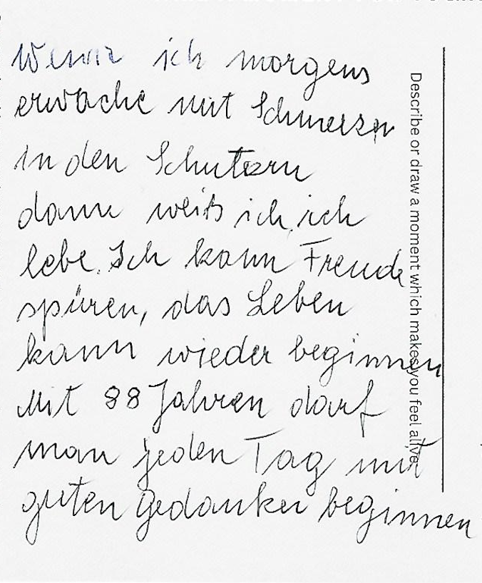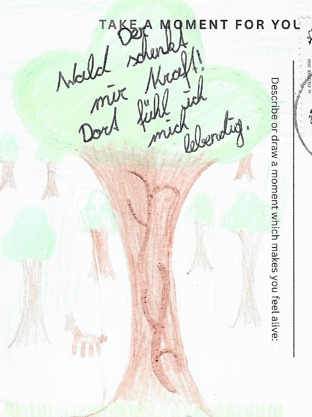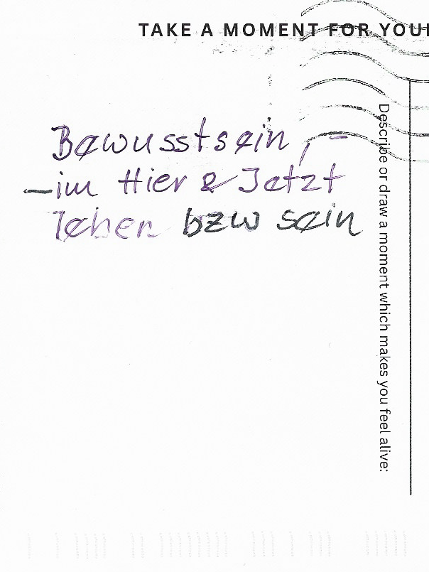 With the design of my postcard I want to give people the chance to remember moments in their every day life which feel full of life. And eventually - according to the law of attraction - get back in touch with that part of themselves, to have those moments more often.